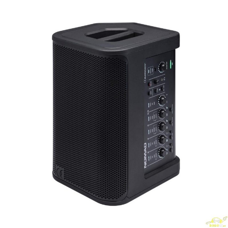 - Altavoz portátil activo de 8" y 200 W alimentado por batería: equipado con mezclador de 5 vías