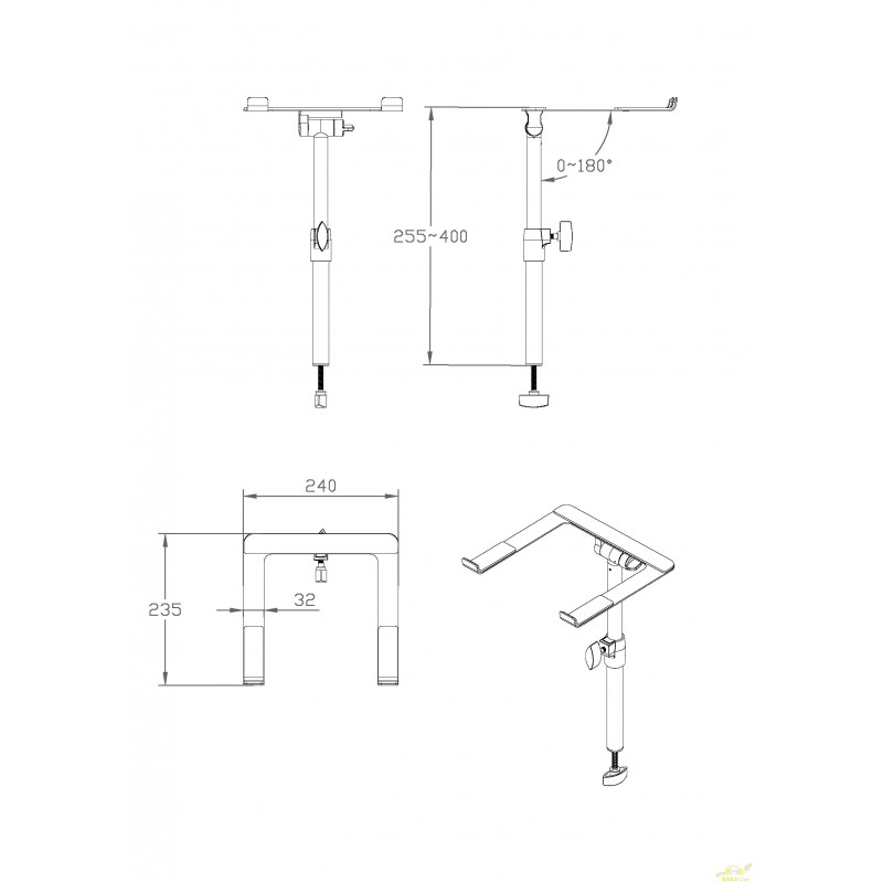 El DBLH1 es un práctico soporte para portátil diseñado específicamente para su uso con la mayoría de las cabinas de DJ Vonyx, que ofrece una solución estable y ergonómica para los DJs que quieren mantener su portátil (o portátiles) al alcance de la mano mientras actúan. Este soporte universal se puede fijar en varias posiciones en el marco de la cabina.