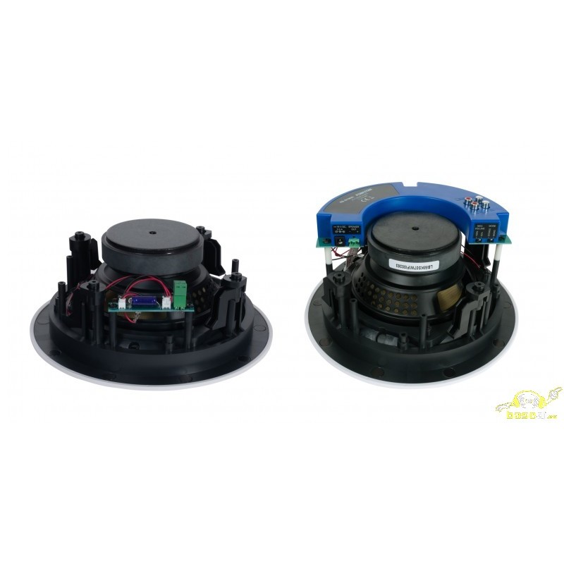 Pareja de altavoces de techo Wi-Fi. Sistema audio multiroom. App para control desde smartphones y tablets. Reproducción mediante Wi-Fi de listas de reproducción, servicios de música online y radio internet. Altavoz activo con amplificador y salida para altavoz pasivo. Prioridad en entrada auxiliar seleccionable. Selector de volumen máximo (50%, 100%). Modo estéreo/mono seleccionable. Rejilla magnética sin marco y bajo perfil. Mando a distancia.