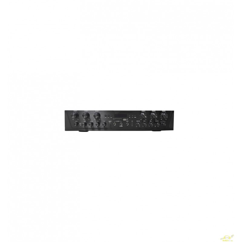Acoustc Control AMP 635 es un amplificador HiFi para 6 zonas con control de volumen independiente, reproductor MP3, Bluetooth y radio FM.