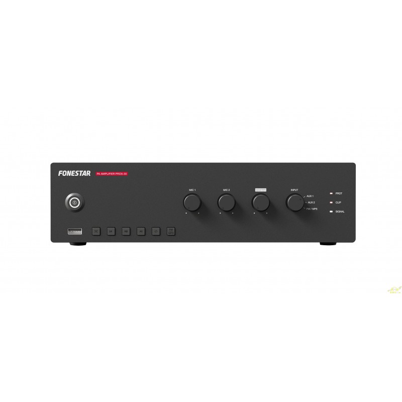 | CARACTERÍSTICAS: | Amplificador de megafonía Reproductor USB/FM. Entradas de micrófono con control de mezcla, ganancia y nivel de prioridad. Controles de tono. Salidas de 100 V y 4 Ω. |
