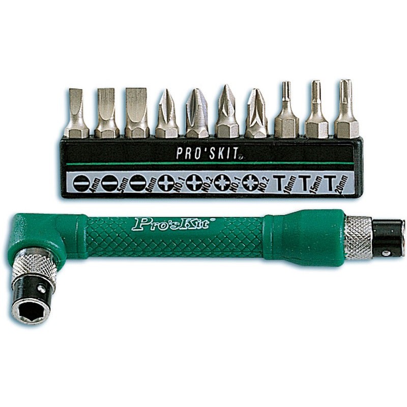 Conjunto de llave-mango para utilización en vertical y horizontal, incluye 10 puntas surtidas:- Plana de 4,0mm.- Plana 5,0mm.- Plana 6,0mm.- Philips Nº1.- Philips Nº2.- Torx T10.- Torx T15.- Torx T20.